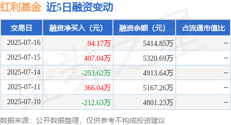 本站音尘,7月16日,红利基金(159581)融资买入402.52万元开云kaiyun.com,融资偿还308.35万元,融资净买入94.17万元,融资余额5414.85万元,近20个交昔时中有11个交昔时出现融资净买入。