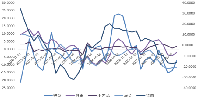 一、食物价钱强于季节性。国庆中秋需求提振,重叠多地降雨影响,食物价钱环比高涨0.3%,远超季节性水平-0.1%。但从分项来看,食物价钱分化明显,鲜菜、羊肉、鲜果、虾蟹类和牛肉价钱涨幅在0.5%-4.3%之间;而猪肉需求未明显回暖,供需失衡态势延续,猪肉价钱环比走弱-2.5%。节后需求惯性下落,终局采购意愿缩小,宰杀企业开工减少,短期供需守护偏松表情难以扭转,生猪价钱或承压,从而株连举座食物项价钱。