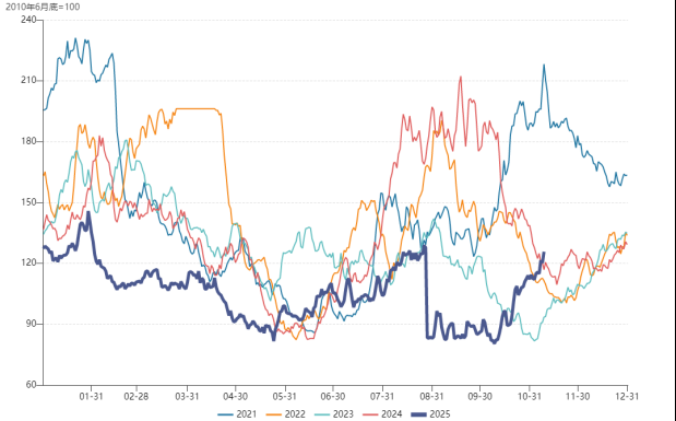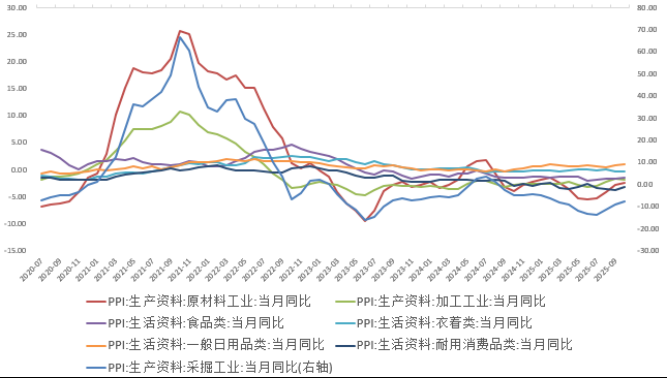 二、“反内卷”握续作用,工业价钱显积极迹象。10月我国PPI同比下落2.1%,前值-2.3%,预期-2.2%;环比高涨0.1%,完了年内初度正增,传递积极信号。在重心行业产能贬责等身分鼓励下,煤炭、光伏建筑等价钱指示多月环比高涨,水泥、规画机、锂电板、集成电路等行业价钱均由降转涨;受国际有色金属价钱上行影响,国内有色金属矿采取和加工行业价钱环比大幅高涨,但受国际油价下行影响,国内石油有关行业价钱有所下落。值得关爱的是,当代化产业体系加速构建和花费后劲有序开释,带动有关行业价钱同比高涨。