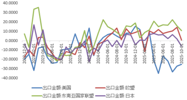 三、出口增速转升为降,生意战好转料进行复旧。按好意思元计价,10月我国出口3053.5亿好意思元,同比-1.1%,前值8.3%,本月我国际贸水平均超预期回落,出口同比更是转升为降,生意战加重使得我国出进口大幅承压。除此除外,2024年10月因台风影响导致出口基数偏高,是变本钱月同比增速转负的要道身分。单从出口金额来看,较上月3285.7亿好意思元仅下落232.2亿好意思元,驻扎国庆停工影响,生意端依旧牢固。10月份,虽中好意思生意摩擦有所升级,但我国对好意思出口已指示两个月边缘改善,同比小幅回升1.8个百分点至-25.2%;对欧盟、东盟、拉好意思、非洲出口同比分辨为0.9%、11.0%、2.1%、10.5%,王人边缘有所回落。